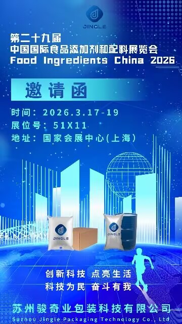 Suzhou Jingle Packaging Technology Co., Ltd. är glada att kunna meddela sitt deltagande i den kommande Livsmedelsingredienser Kina 2026 utställning. Evenemanget äger rum från kl 17 till 19 mars 2026 vid Nationellt utställnings- och kongresscenter (Shanghai) . Besökare är välkomna att träffa företagets expertteam kl Monter 51X11 att utforska heltäckande förpackningslösningar och diskutera potentiella samarbeten.